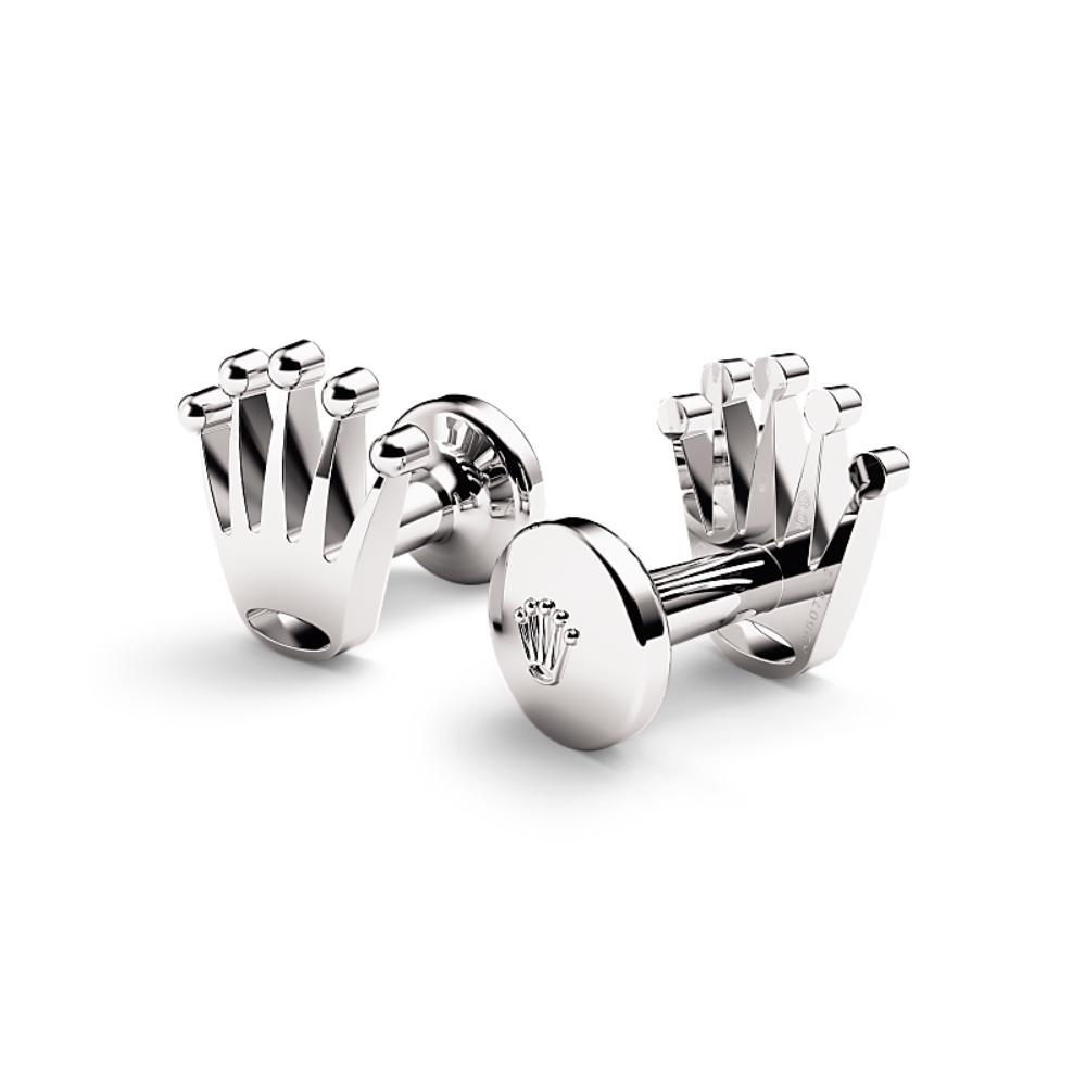 Rolex cufflinks made of 18 ct white gold and shaped in the form of the signature Rolex crown.