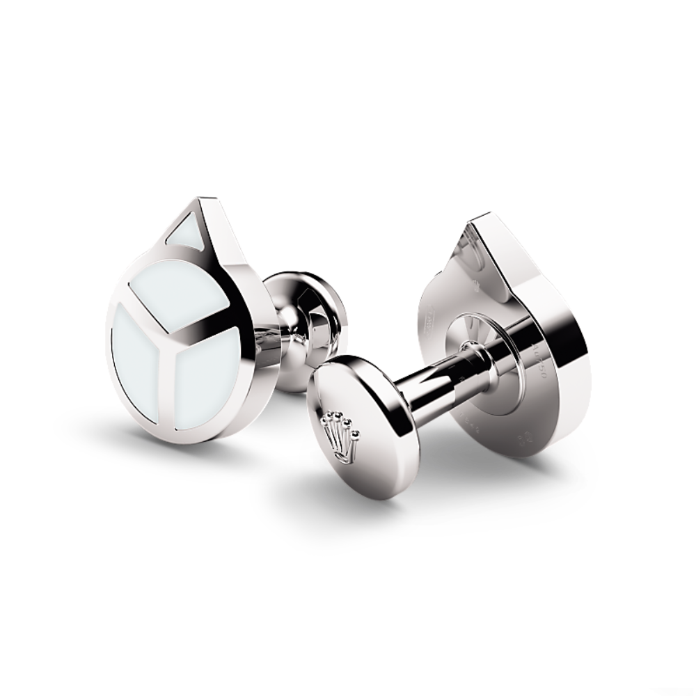 Rolex cufflinks made of 18 ct white gold that echo the hour hand found on Professional Rolex watches, equipped with a Chromalight display.