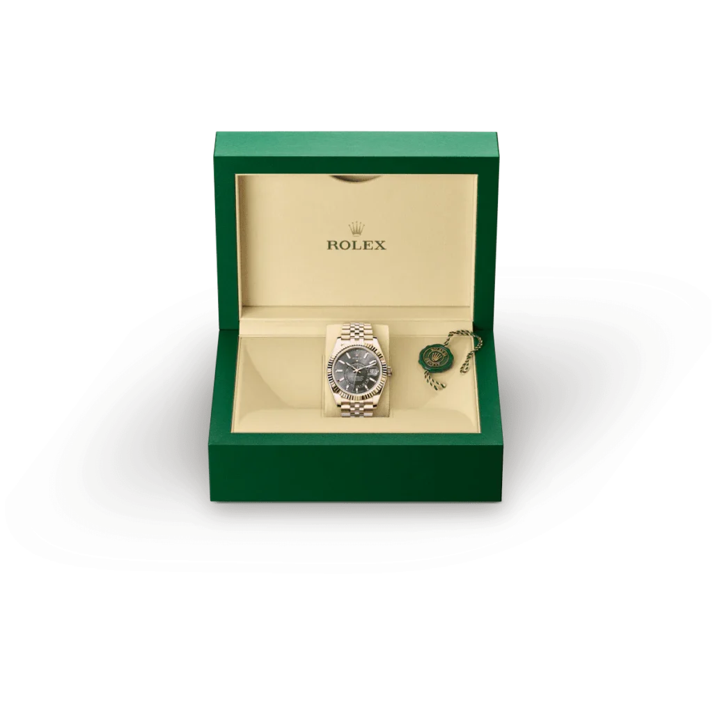 Every Rolex is delivered in a beautiful green presentation box that is both protector and keeper of the jewel that nests inside it. As the presentation box is also a symbol of giving, it is important, if you are purchasing a gift, that the recipient’s first contact with their Rolex sets the stage for revealing what lies within.